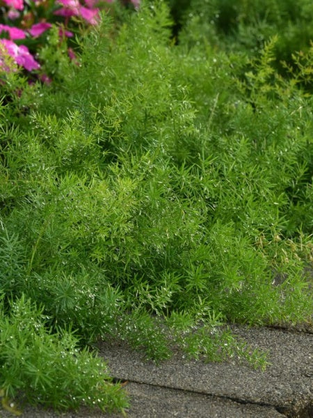 DESCRIPTION: NEW 2025 Feathery and soft, this variety of asparagus creates great visual interest in planters or baskets, flowers are short lived and are hidden behind foliage, therefore not very noticeable. Heat and drought tolerant.