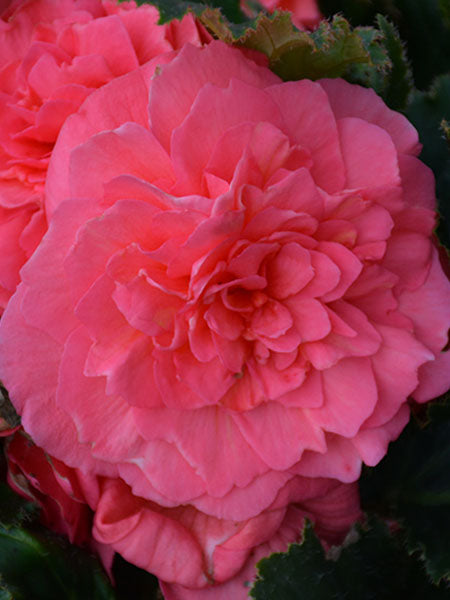 DESCRIPTION: Nonstop® Pink Begonia features dainty pink frilly flowers at the ends of the stems from mid spring to mid fall. Its succulent heart-shaped leaves remain green in colour throughout the season.