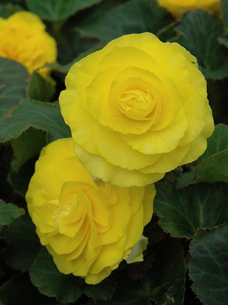 DESCRIPTION: Nonstop® Yellow Begonia features dainty yellow frilly flowers at the ends of the stems from mid spring to mid fall. Its succulent heart-shaped leaves remain green in colour throughout the season. The fruit is not ornamentally significant.