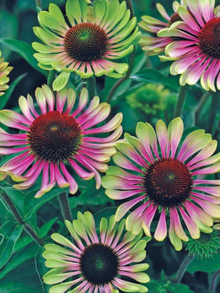 DESCRIPTION: This stunning echinacea produces large flowers that are lilac-pink with yellow-green tips and coppery centers; a perfect choice for planting in groups, along border edges, or in containers; great for flower arrangements; attracts pollinators