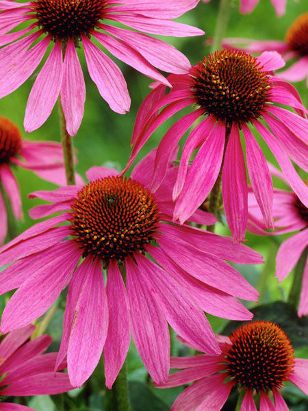 DESCRIPTION: Magnus Coneflower has masses of beautiful lightly-scented fuchsia daisy flowers with coppery-bronze eyes at the ends of the stems from mid summer to mid fall, which are most effective when planted in groupings. The flowers are excellent for cutting. Its large pointy leaves remain green in colour throughout the season.