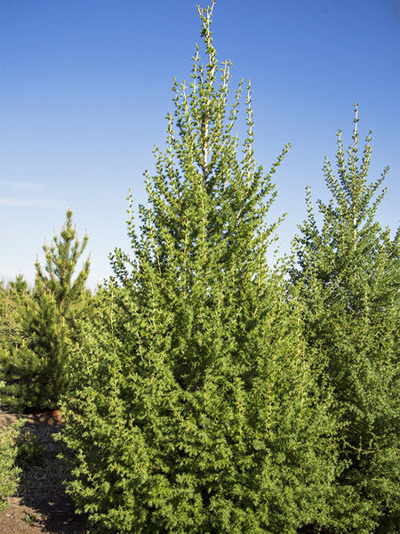 DESCRIPTION: Broad, pyramidal canopy with larger cones than Native Larch. Attractive, soft, new green needles in spring that turn a nice golden colour in fall. Tolerant of most soils. Drops needles for winter.