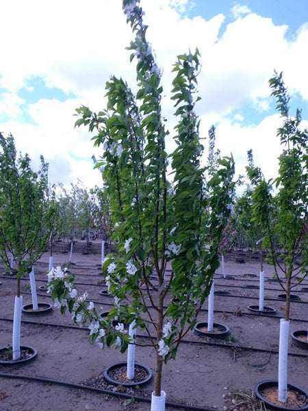 DESCRIPTION: Green foliage with profuse white flowers in spring. Tasty red crab-apple excellent for eating, cooking and makes delicious jelly. The perfect combination of accent and fruit tree, ideal for home landscapes, needs well-drained soil and full sun; very hardy red crabapple, ideal for jams, heavy bearing and ornamental; eating apples are high maintenance, and need a second pollinator.