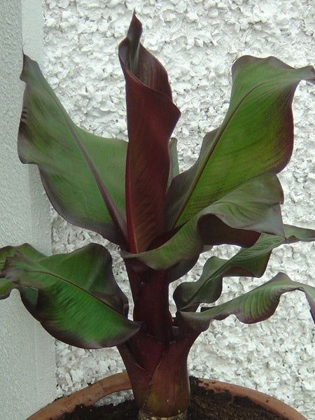 DESCRIPTION: NEW 2025 An outstanding ornamental banana. Growing to 10' tall in temperate climates. Foliage is flushed with burgundy, especially concentrated as the new growth emerges. The higher the light levels the stronger the coloration.
