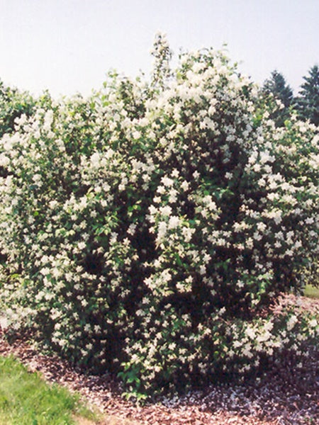 DESCRIPTION: A native selection from the Waterton Lakes area in Southern Alberta. Hybridized by the Alberta Horticultural Research Station in Brooks, Alberta. Very showy clusters of single white flowers in early summer. The flowers have a heavy, sweet scent similar to orange blossoms with a hint of pineapple.
