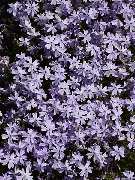 DESCRIPTION: Blue Moss Phlox is smothered in stunning lavender star-shaped flowers at the ends of the stems from early to late spring. Its tiny needle-like leaves remain emerald green in colour throughout the year.
